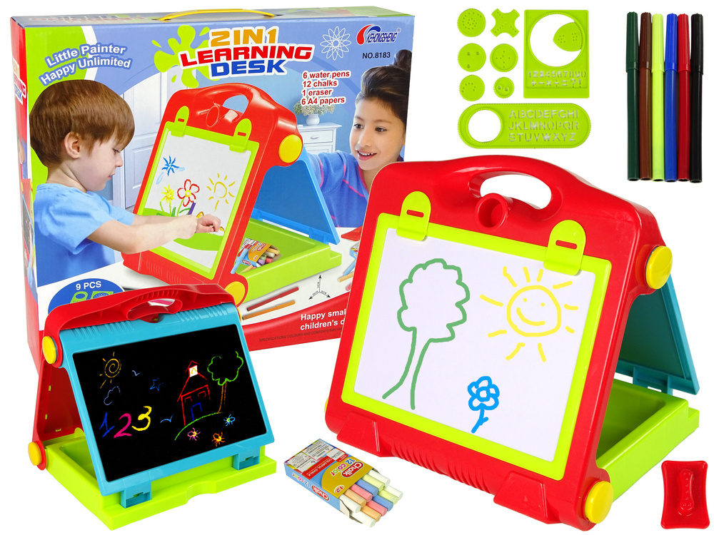 A new, educational, large board will delight every little fan of artwork. You can write on the board with a marker or chalk, draw different patterns.
