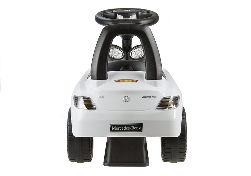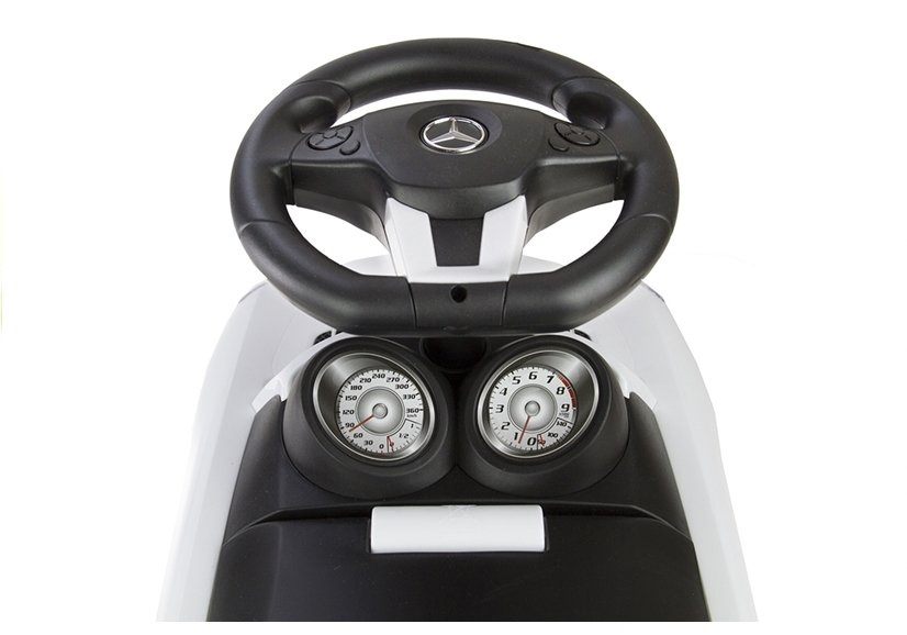 This children’s ride-on is also a great help for parents, as it makes longer walks in the neighbourhood or trips easier to organise and run. The seat of the toy Mercedes is liftable and the space underneath can be used, storing your little one’s favourite toys there. The backrest will prevent your toddler from leaning backwards.