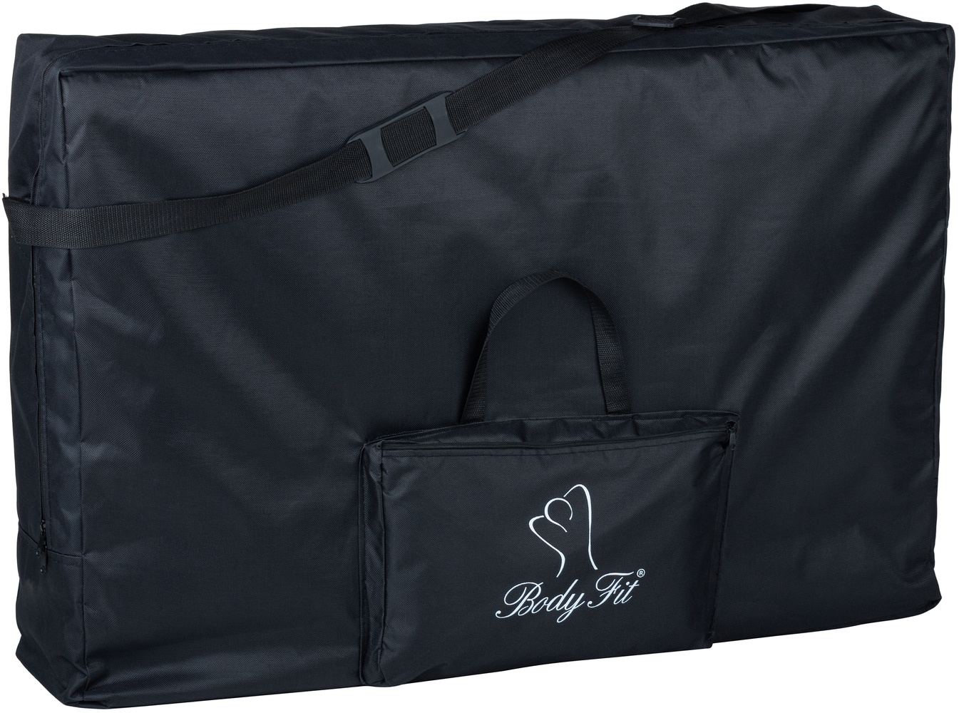 Pokrowiec został dodatkowo wyposażony w pas na ramię oraz schowek na wałek do masażu.