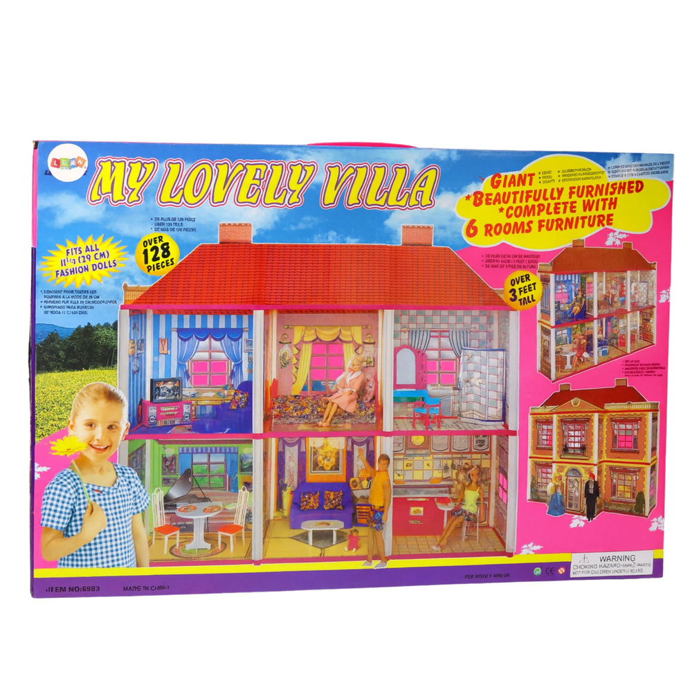 VILLA DOLLHOUSE 128 PIECES – 6 ROOMS, FURNITURE, LARGE SET